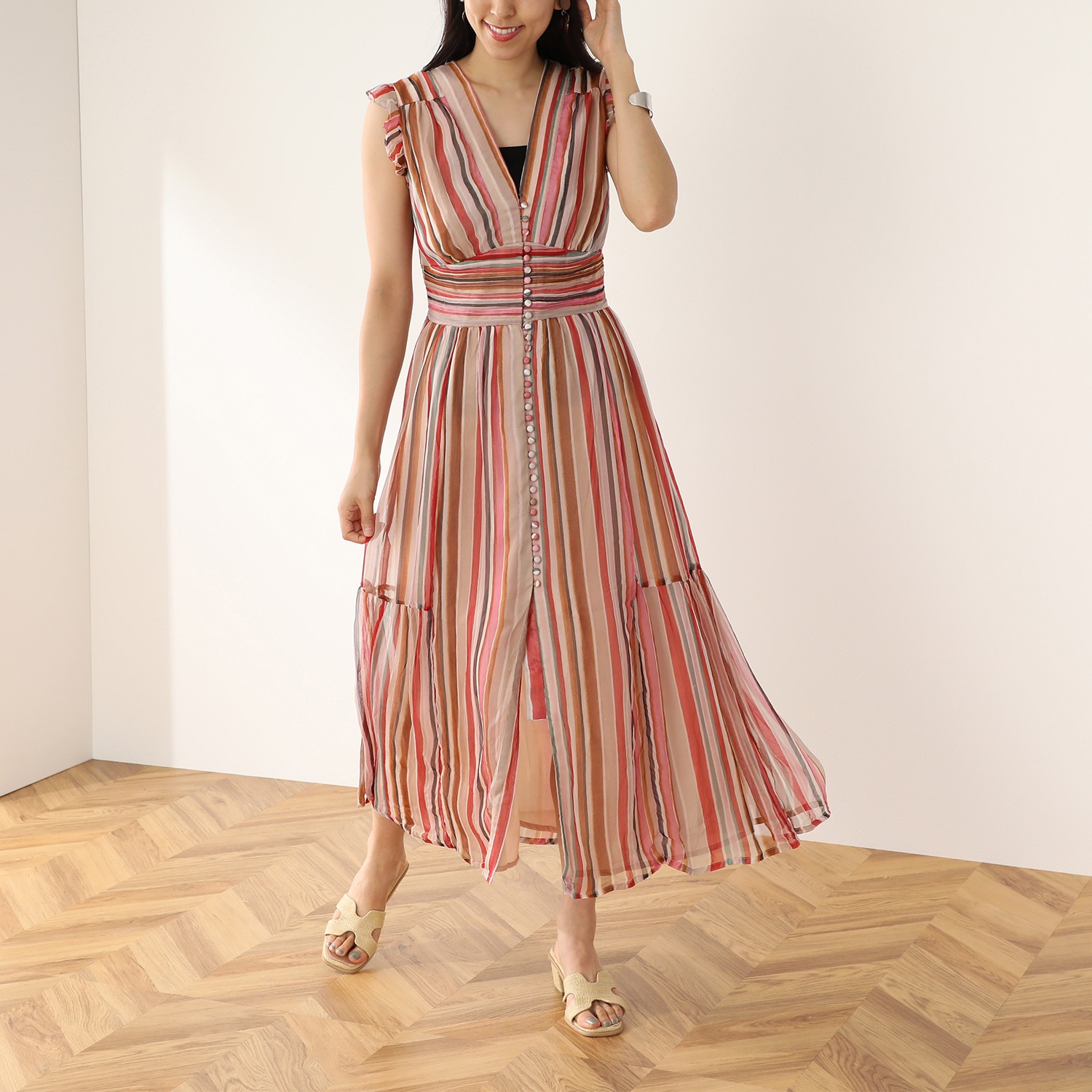 洗える マルチストライプ ノースリーブワンピース マキシ ロングワンピース Untitled アンタイトル ワールド オンラインストア World Online Store